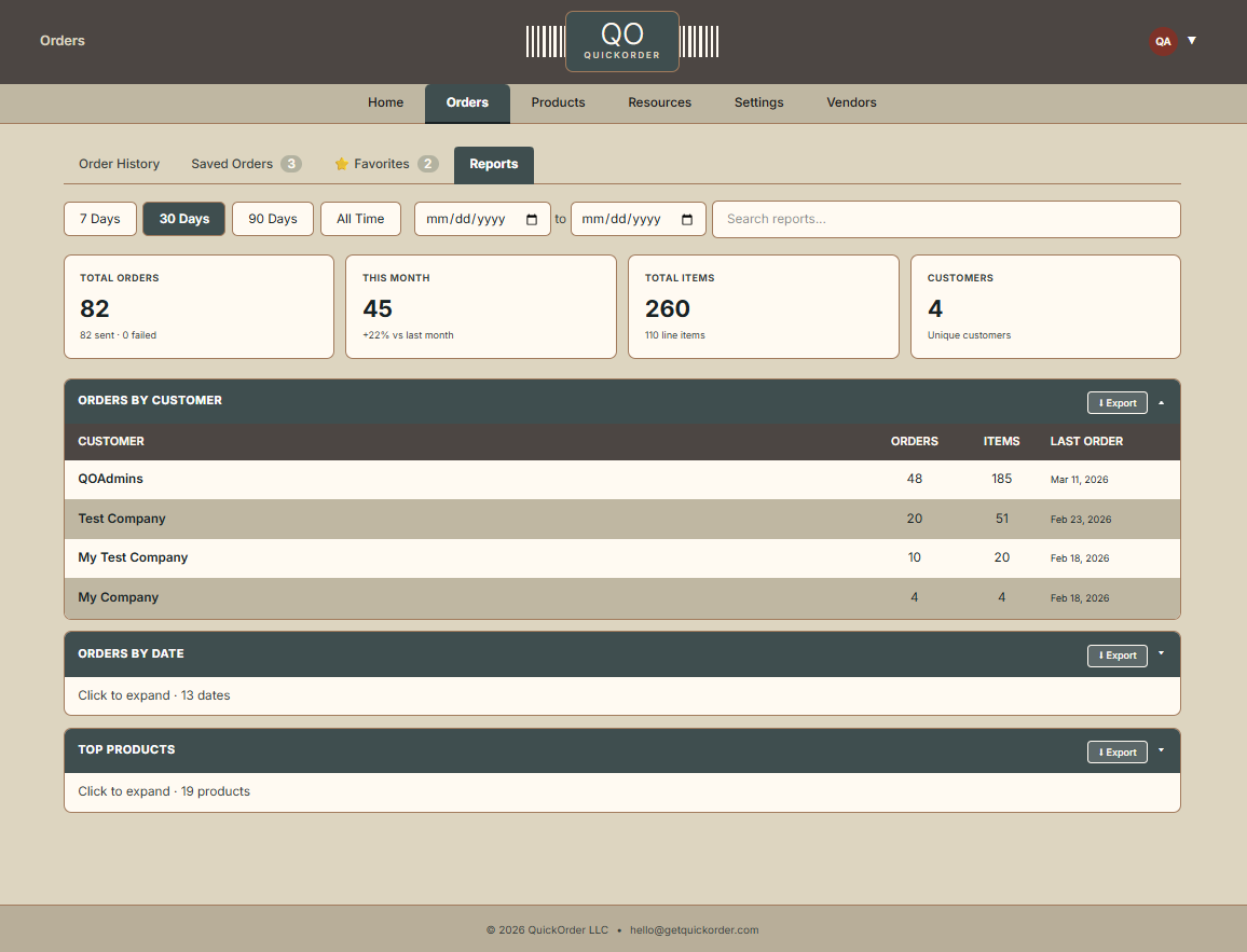 Orders, reports, vendors — see it all at a glance.